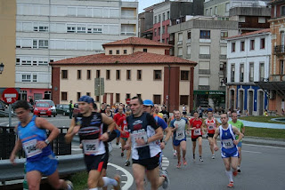 Pues despues de una semana en la que los entrenos brillaron por su ausencia, ya que eran mis vacaciones y solo me he echo un entreno serio de 52 km y un rodaje al día siguiente de 8 km , nos adentramos el Mister y yo a correr la pedestre de ribadesella , el ambiente bueno , la gente muy buena , el lugar espectacular ¡¡¡¡¡ Que falló? la organización , parecia como si no existiera, nos han calcado 5 eur por un botellin de agua de 33 cl. tela marinera ,pero bueno vamos hablar de lo que ha sido la carrera en sí, el recorrido de escandalo en su mayor parte llano, aunque tenía dibujados dos desniveles ,el primero alargado y poco pronunciado, y el segundo un poco mas cabroncete. Empezamos a rodar a 3:31 bueno empeze yo , percatandome sabiamente que no era el ritmo a empezar una carrera tan corta y tan rápida en la que los fondistas sufrimos tanto, y sin rebajar demasiado el ritmo fuí aguantando un rato para unirme a julio,una vez que lo enganche cogimos los dos un buen ritmo sin adelantar a mucha gente pero no dejando que los de atras se nos sublebaran,así hasta que una mala respiracion me produjo un punto. Que dolorrrrr en el pecho¡¡¡¡¡ pero sin pararme y sin dejar que me pasara demasiada gente , conseguí recuperarme y volver tirar, en ese momento el grupo se dividio en dos, la cabeza de carrera con un numeroso grupo de gente aproximadamente 20 o 30 personas y en el que estaba yo que durante mucho tiempo fuí liderando muy comodo , respirando , controlando lo que pasaba a mi espalda.En el segundo repecho es donde me adelantaron 2 hombres mas que en la subida en la bajada , y para terminar con un gran sprint¡¡¡ para que ? pues como dice mi mister , lo ultimo que haces es lo que memoriza tu cuerpo. Habiamos completado el circuito de 8.500 metros (mal medidos que eran unos pocos mas) en un crono de 33min (aun no estan las malditas clasificaciones).