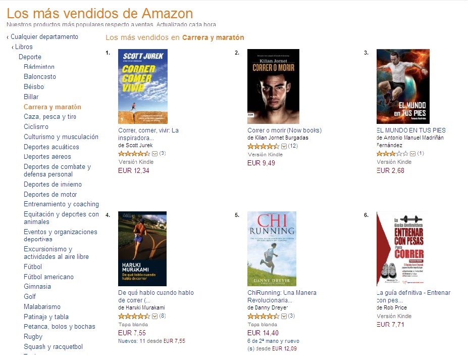 Da mucho gusto levantarse y comprobar que en el día de hoy tu libro está entre los más vendidos en amazon, además tan bien acompañado, siguiendo de cerca a Scott Jurek y al grandísimo Kilian Jornet, ojalá esta alegria dure mucho, pero por lo de ahora, nadie me la puede quitar.